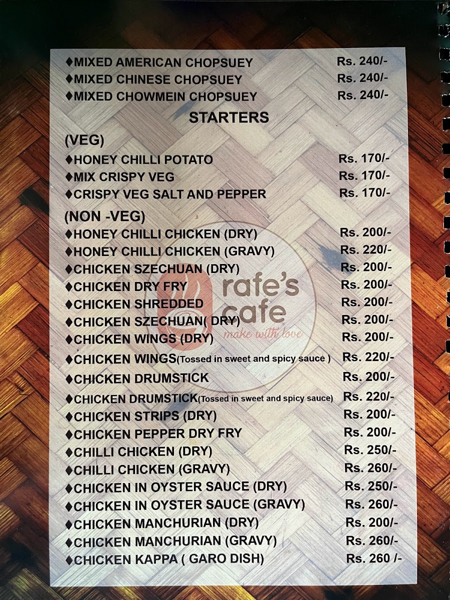 Welcome to Rafe's Cafe, a cozy gem nestled in the vibrant area of Lapalang, Shillong. This charming café offers a delightful culinary journey that combines the flavors of Chinese, Garo, and Naga cuisine, making it a perfect local spot for food enthusiasts.